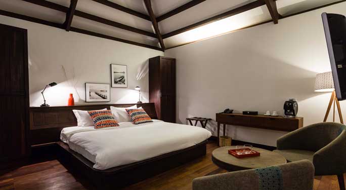 Uniquely decorated with a blend of Khmer and art deco theme, each of these spacious 55 sqm suites has a private garden with outdoor shower and king size bed (possible extra bed). All suites have been refurbished in late 2018 and feature a walk-in wardrobe and living area with, a safe, mini bar, phone, centralized A/C, shower, free bottled water, espresso machine, complimentary WIFI, flat screen TV on request, oversized bathtub, private steam bath, and seating area, daily locally crafted turn down gifts.Colonial Jacuzzi Suites (2 units)