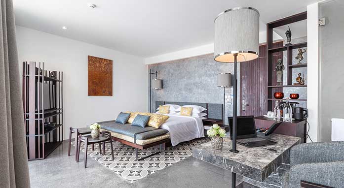 Sadana means palace.The largest accommodations at Hotel Vellita Siem Reap, the Sadana Suites are 64sqm and comfortably sleep up to 2 guests on an extra-long king bed dressed in luxury bedlinens. Chic, elegant, bright and airy these suites feature a private balcony that enjoys views of the hotel garden, pool and surrounding cityscape. The Sadana Suites also feature wheelchair access, a flat screen smart TV that can be connected with your phone via complimentary wifi, coffee machine, minibar and in-room safe.