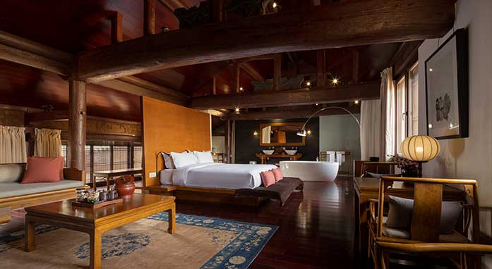 This unique 80 m² suite is located on the second level and has bird's-eye views overlooking Ping Yao's rooftops. Guests can also enjoy the views from the bathtub that is strategically placed in the middle of the open-spaced suite.Room Facilities : air conditioning, safe box, mini-bar, satellite TV, free Wifi / cable, CD/DVD player, bathrobe, hair-dryer.