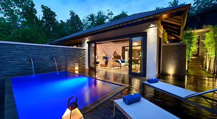 Samsara Ubud’s most spacious villa, the three-bedroom pool villa, is perfect for groups of friends or families travelling together. At 245sqm this villa comfortably sleeps up to 6 adults, or 6 adults and 3 children in the villa’s 3 king size bedrooms. The entrance to this property is via the traditional Balinese gateway, opening onto a beautiful fishpond set within the tropical garden. The 20sqm outdoor heated infinity-edged swimming pool looks out across the property to the surrounding forested hills. Stepping into the ground floor, here you will find the lounge and dining area and the first of 3 bedrooms. The ground floor bedroom is set with a king size canopy bed. On the first floor are 2 more bedrooms, each set with a king size canopy bed. The en-suite bathrooms are marble-lined, set with twin vanity units, separate rain shower and a luxuriously deep bathtub. Room amenities include 24-hour butler service, air-conditioning, in-room safe, TV, complimentary WiFi, tea and coffee set, and minibar.Useful Information