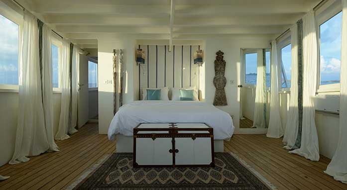 Alexa is the height of luxury sailing in Indonesia. Designed with just 1 couple in mind, Alexa was converted from a traditional Phinisi that once plied the waters between Sulawesi, Komodo and Raja Ampat carrying cargoes of fruit and spice. The gently curved lines of her traditional Phinisi hull and the expertly refitted interiors have created a wonderfully romantic yacht, both outside and in, making Alexa the perfect choice for couples looking for a truly romantic holiday sailing in Indonesia.The owner of Alexa is a professional interior designer and they have created a bright, light and airy onboard space using a beautiful mix of soft furnishings in natural fibres with light, gentle earth tones with turquoise accents, and reclaimed teak wood. The interior spaces are decorated with carefully selected Balinese antiques and original art. At 31m long Alexa is a very spacious yacht, set with one master cabin that enjoys panoramic views of the passing scenery from the cabin’s large windows. The cabin also enjoys an en-suite bathroom and a private balcony on the aft deck. Dining can be enjoyed both in the indoor lounge and dining room, or on the upper deck, which is also a perfect space for star gazing. A large day bed is set on the foredeck, the ideal space for sunbathing, relaxing or perhaps enjoying traditional massage from the on-board therapist.
