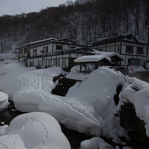 A big, 91 square meter Japanese/Western-style room with a mix of Western and Japanese floor-level seats and furniture can be found in the living area. The sleeping accommodations are cozy Japanese futons with fragrant tatami mats. The roomy rotemburo is a large, lovely slate building that looks out over the maple forests. It is accompanied by a large wooden terrace, making it the perfect spot to sit and think about the northern seasons and feel the calming natural breeze.Japanese Western Style Suite D