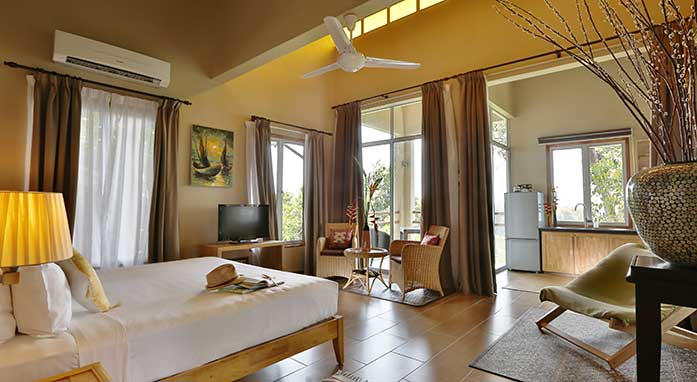 Located on the highest part of the Ambong Rainforest Retreat’s land, both the Canopy Suites and the Rainforest Suites share wonderful views of the Gunung Machinchang Mountain Range, the surrounding rainforest, and the Andaman Sea with their guests. At 84sqm the suites comfortably sleep 2 adults or a maximum of 3 adults with the addition of an extra bed (chargeable). Each Suite is fitted with a king-sized bed, en-suite bathroom with shower, a luxury wooden bathtub set on a large balcony, lounge space both indoor and on the balcony, workspace and a laptop sized safe, and a kitchenette with a refrigerator, microwave oven and electric kettle.The Two-bedroom Cottages (2 units)