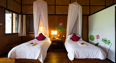 Overlooking the lake, these traditional 56-69sqm chalets feature a spacious private deck, outdoor shower and clay oven, replete with Inthar textiles, Shan paper lanterns, and traditional furnishings and artwork.Princess Houses