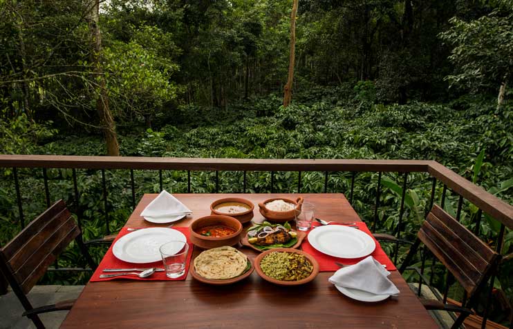 The journey begins with a scenic rural ramble along country roads past vibrant green rice paddies, forested hills and plantations of cardamom, ginger, betel nut, rubber, tea and coffee as we climb up into the beautiful unspoilt Wayanad District of the spectacular Western Ghats. Pepper Trail Heritage Plantation Retreat is charming colonial era property set on a working spice and coffee plantation.