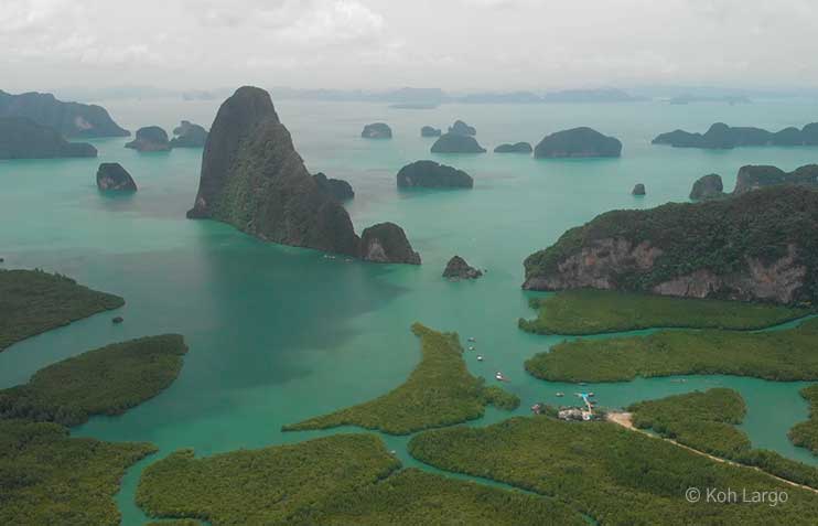 Phang Nga Bay is undoubtedly one of Thailand’s main tourist attractions. While it might not be widely recognized by name, many have heard of its islands, such as Phuket, Koh Phi Phi, and Koh Lanta. This 520-kilometer Phang Nga Bay tour will take you through some of Phang Nga Bay’s wonders, both famous and hidden. Starting in the Andaman Sea at Koh Phra Thong island, the journey takes you south to Phuket, which forms the eastern part of the bay, before circling towards Krabi on its west coast. One of the most iconic spots in the area is James Bond Island, known for its towering limestone rock formations.