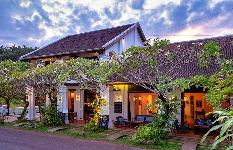 Before dinner, we may suggest a cocktail at the bar and for dinner a Lao-style set menu is served at the restaurant of the hotel.