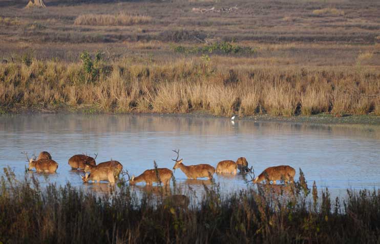 If the Parks at Ranthambore and Bandhavgarh are overflowing with travelers, Kanha Reserve is more laid back if you are keen to spot a tiger and enjoy the sunset in a forest teeming with deer and birds. There are about 60 tigers in the park that inspired Rudyard Kipling for The Jungle Book. The Kanha National Park is one of the largest national parks covering 1945 sq. km including a "core zone" of 940 sq. km. It is also part of Project Tiger, one of India's most important conservation efforts. This beautiful area of forest and lightly wooded grassland with many rivers and streams support an excellent variety of wildlife. Some of the species we may encounter include the endangered Hard-ground Barasingha (this being the only place where this subspecies of deer persists), Barking Deer, Spotted Deer, the largest of all bovines Gaur, Golden-backed Jackal, Jungle Cat, Common Langur, Sloth Bear, Wild Boar, Dhole or Asian Wild Dog, and the elusive Chowsingha. There is also a rich collection of bird species such as: Asian Paradise Flycatcher, White Rumped Shama, White Bellied Drongo, Spangled Drongo. Racket Tailed Drongo, Twany Babbler, Jungle Babbler, Indian Scimitar Babbler, Grey Francolin, Painted Francolin, Black Naped Flycatcher, Common Iora, Eurasian Blackbird, Gold Mantled Chloropsis, Jerdon's Leaf Bird, Golden Oriole, Black Hooded Oriole, Common Grey Hornbill, Malabar Pied Hornbill, Asian Brown Flycatcher, Tickell's Flowerpecker, Verditor Flycatcher, Twany Fish Owl, Barred Jungle Owlet, Spotted Owlet, Brown Fish Owl, Indian Scops Owl, Mottled Wood Owl, Crested Serpent Eagle, Shikra, Common Kestrel, Changeable Hawk Eagle, Pariah Kite, White-Eyed Buzzard, Oriental Honey Buzzard and Indian Pitta. For nature lovers!