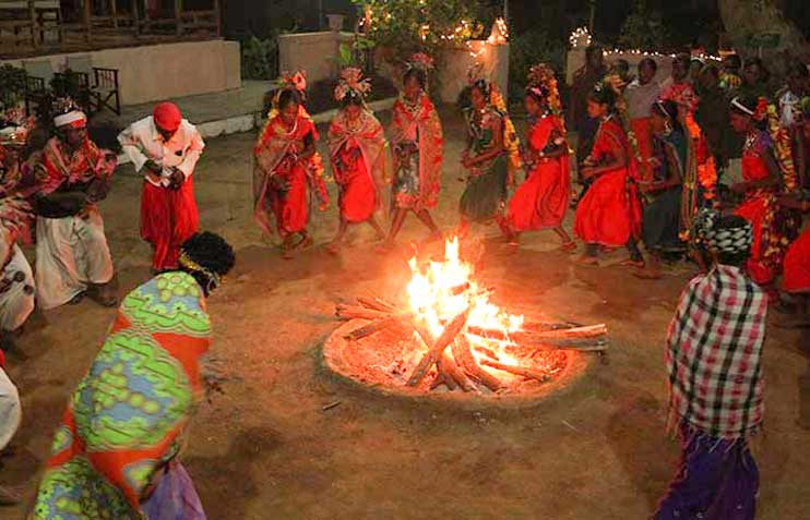 In the afternoon, we will guide you for a Tribal Village walk. A pristine authentic India you find yourself drifting through small villages that have fields of paddy, sugarcane and other seasonal crops around their periphery. The first thing you notice is the bright smiling faces of little children content with their make-shift toys. Women going about their daily chores: drawing water either from the hand pump or the village well, and men returning from the fields or attending to odd jobs around the house. The houses of the village are mostly built with hand made mud bricks, plastered with mud and cow dung with a layer of limestone used as paint, often painted in a stunning blue. Back to the lodge for a cooking class with Chef, and for the evening, we plan some traditional local Tribal dance and performance, an ancient tradition of the region presented with the dinner.