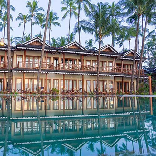 Many years ago a young Italian traveler lived for a while along this beach. He fell in love with the sand and the sea, reminding him of his home in Naples. Most probably over the years Naples and the local pronunciation of its Burmese name meaning “inveigling Fish” became known as Ngapali. This beach is located in the state of Rakhine, facing the Bay of Bengali. Thandwe (Sandoway during British time) is about 25 minutes drive to the Resort and 15 minutes drive to the airport. Ngapali is a 3km long white sandy pristine beach overlooking the clear bluewater of the Bay of Bengal, backed by swaying coconut palms and casuarinas-trees. After sunset, the sea in front of the beach is lit by the lanterns of the fishermen’s boats and can be seen until morning.