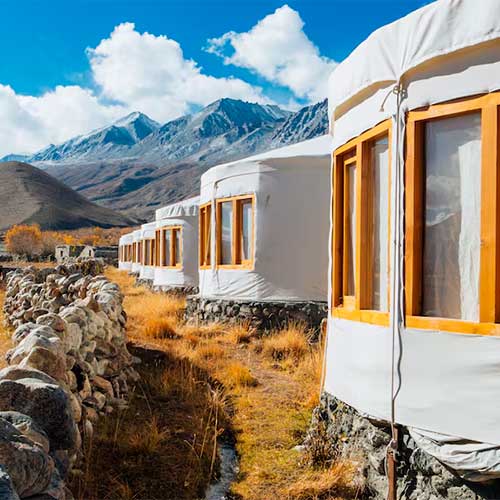 After a soul-nourishing experience, we retreat to a picturesque spot where a sumptuous lunch awaits. If the weather permits, we indulge in a picnic, surrounded by breath-taking vistas that seem to stretch to eternity. Post Lunch we embark on the next leg of our journey towards Panamik village. Here, the earth's warmth bubbles to the surface in natural hot springs. Back to Lchang Nang Retreat, to relax, enjoy the bone fire and the dinner.
