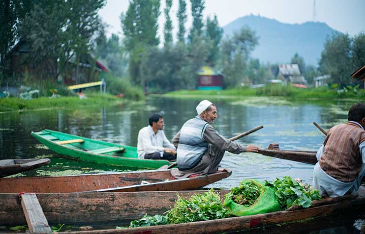 In the evening, enjoy a gentle shikara (Kashmiri canoe) ride through wetlands in the heart of the lake to see people farming on the manmade islands cultivating flowers and vegetables.