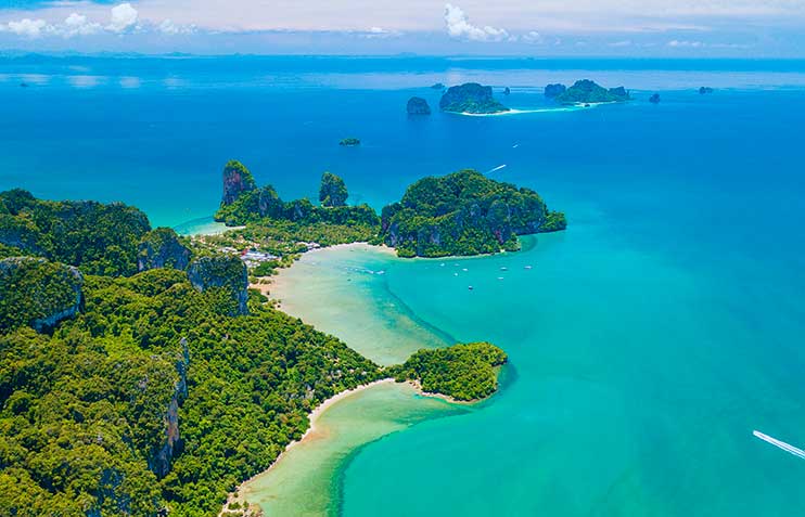 Hop around the small island of Koh Poda. Look through the light blue clear waters and the white sands covering the beaches that shift into kaleidoscope colors of the oceans as reefs. Visit the Secret Beach in Poda’s Cove. Look out into the oceans filled with limestone cliffs and blue reflections. You can continue hopping over to Thale Waek sand bar between Poda Island and Ko Kai Island. Feel as if you were standing in the middle of the ocean and frolicking on the shallow waters. Hop on over on to another