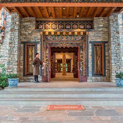 After an eventful day, arriving at the resort you will meet with intricate detailed buildings brimming with culture and history. Here you will have the rest of the day to relax and enjoy the resort’s activities such as yoga and Bhutanese, the resort’s very own traditional tea house, and even visit the in-house spiritual temple in the resort.