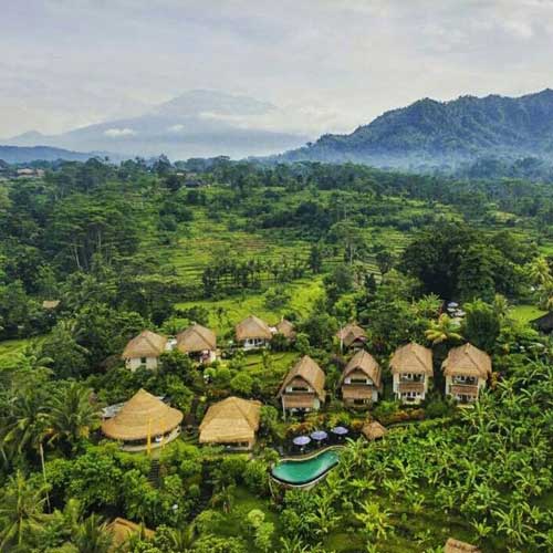 In the morning, discover the colorful market of Seririt. Departure for the village of Sangsit and visit of the Beji temple, built in the 15th century and dedicated to the goddess of rice fields, Dewi Sri. Continue along the Batur Lake to the mountain village of Kintamani overlooking the volcano. We arrive at the end of the day at Sidemen village, surrounded by the rice terraces and plantations, on time for you to check-in at Surya Shanti Villa, an eco-resort with 2 infinity pools, a riverside spa, a restaurant overlooking the valley. A foot massage is offered upon arrival.