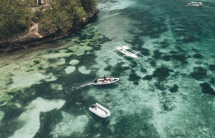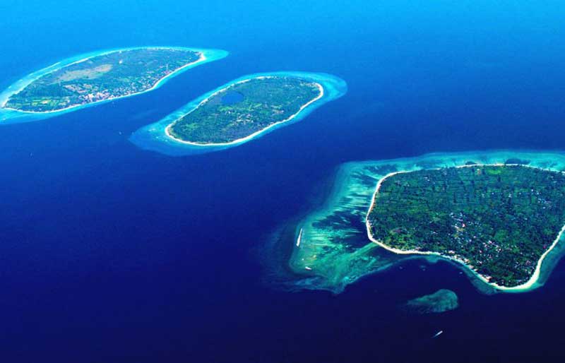 - the white sand beaches, coconut trees and coral reefs of Gili or Lembongan