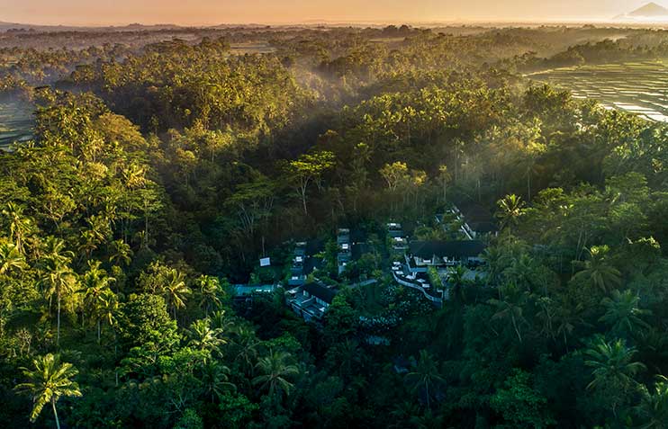 For lunch, we will go to a traditional house, in Denpasar - a friendly way to enjoy a fresh and succulent cuisine, surrounded by the decorations of a traditional house very well maintained. Continuation to Ubud, considered as the cultural capital of the island, we stop to visit the Monkey Forest on the way before arriving at your glamping site, offering a complete privacy in each tent and lumbung (rice barns), or your private villa (2 options) - between rice fields and valley.