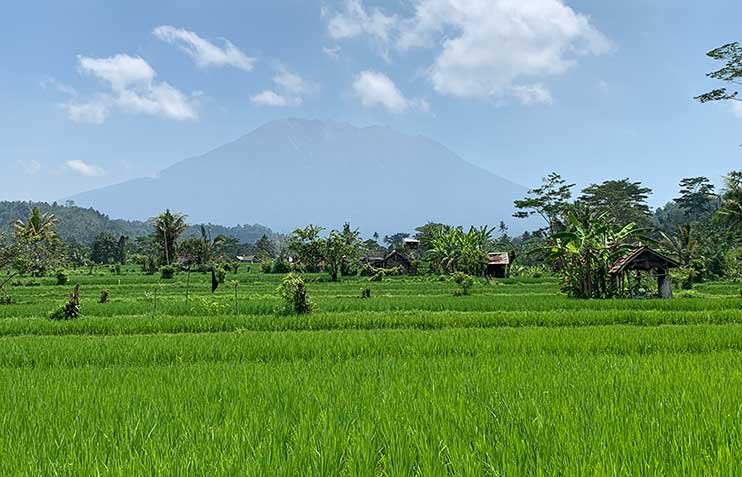 - the traditional village of Sideman facing Mount Agung