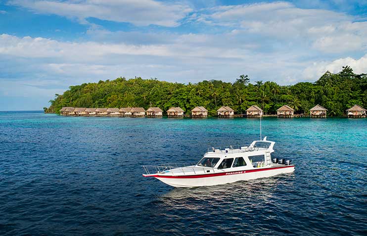 Breakfast served at the hotel, transfer back to Manado airport to catch a flight (not included in the quote), to Sorong, where a driver will come and pick you up and transfer you to the pier to board the resort speed boat departing at 2pm from Sorong to Papua Paradise (about 2hrs cruise). Check in at the resort for the next 5 nights. Dinner served at the resort.